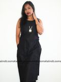 The striking halter neck kurta showcases a sleek, minimalist design that celebrates the neckline and shoulders with elegant simplicity. Crafted from premium pure cotton, the rich black fabric provides a sophisticated canvas that highlights the architectural lines of this innovative silhouette. The thoughtfully designed halter ties secure comfortably at the nape, creating a beautiful open back detail that adds an unexpected element of allure to this traditional-inspired piece.