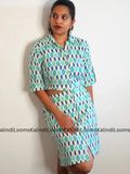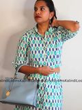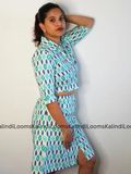 This coordinating set features a thoughtfully designed cropped shirt and skirt crafted from ikat-woven cotton. The clean collar of the top frames the face beautifully, while the button-down front offers styling versatility—wear fully buttoned for a polished look or partially undone for a more relaxed approach. The accompanying skirt creates a balanced silhouette that complements the proportions of the cropped top. Practical side pockets add functionality without compromising the clean lines of the set, while the breathable cotton fabric ensures all-day comfort across seasons and settings. The natural variations in the handwoven ikat textile speak to the artisanal quality of this coord set—slight irregularities that reveal its authentic, handcrafted nature. Please note that actual colors may vary slightly from the images shown.